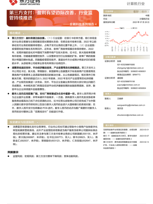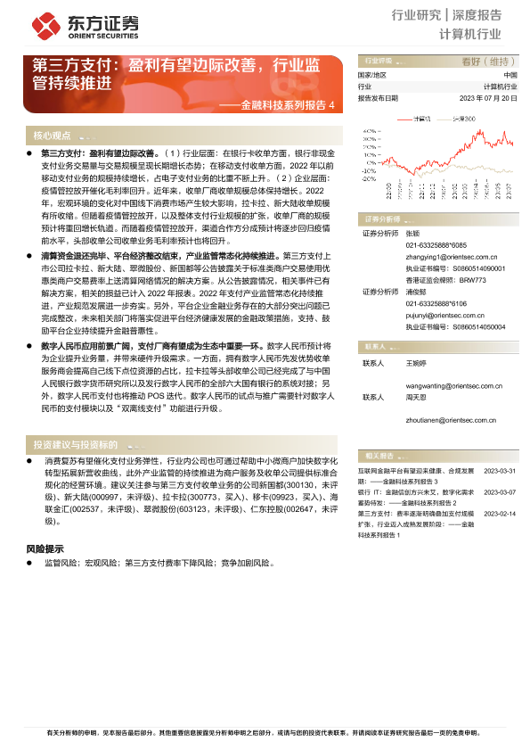 【东方证券】【20230720】金融科技系列报告4:第三方支付:盈利有望边际改善,行业监管持续推进-21页