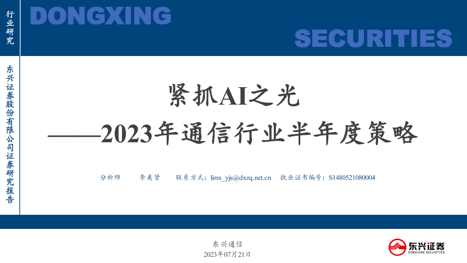 【东兴证券】【20230721】紧抓AI之光 ——2023年通信行业半年度策略-33页