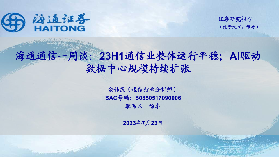 【海通证券】【20230723】23H1通信业整体运行平稳;AI驱动数据中心规模持续扩张-11页
