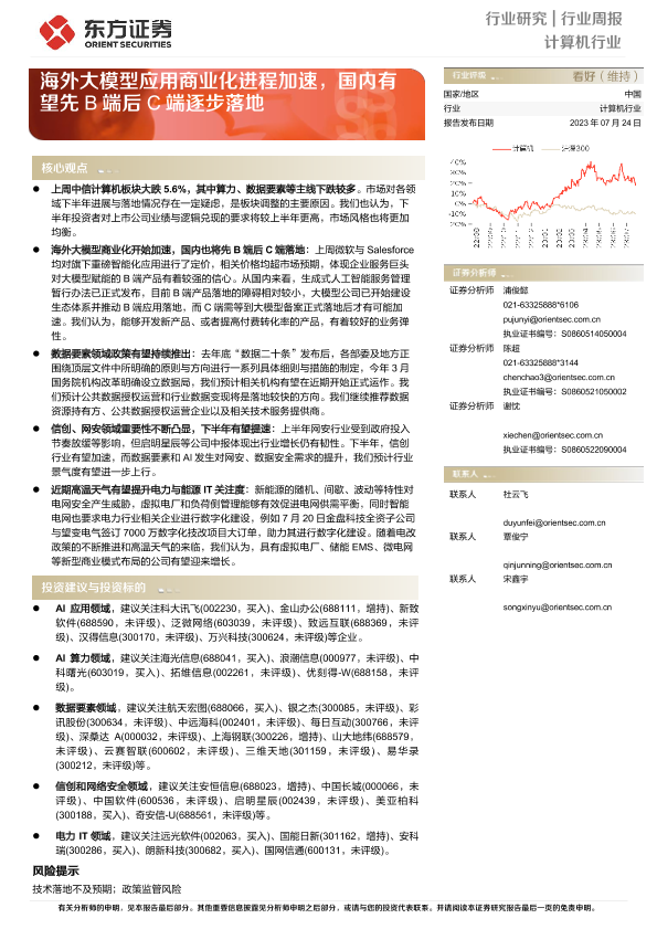 【东方证券】【20230724】计算机行业行业周报:海外大模型应用商业化进程加速,国内有望先B端后C端逐步落地-11页