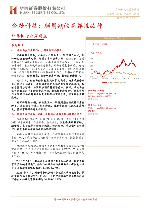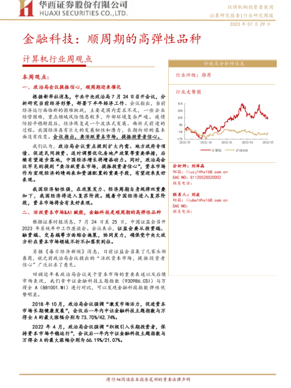 【华西证券】【20230729】计算机行业周观点:金融科技:顺周期的高弹性品种-29页