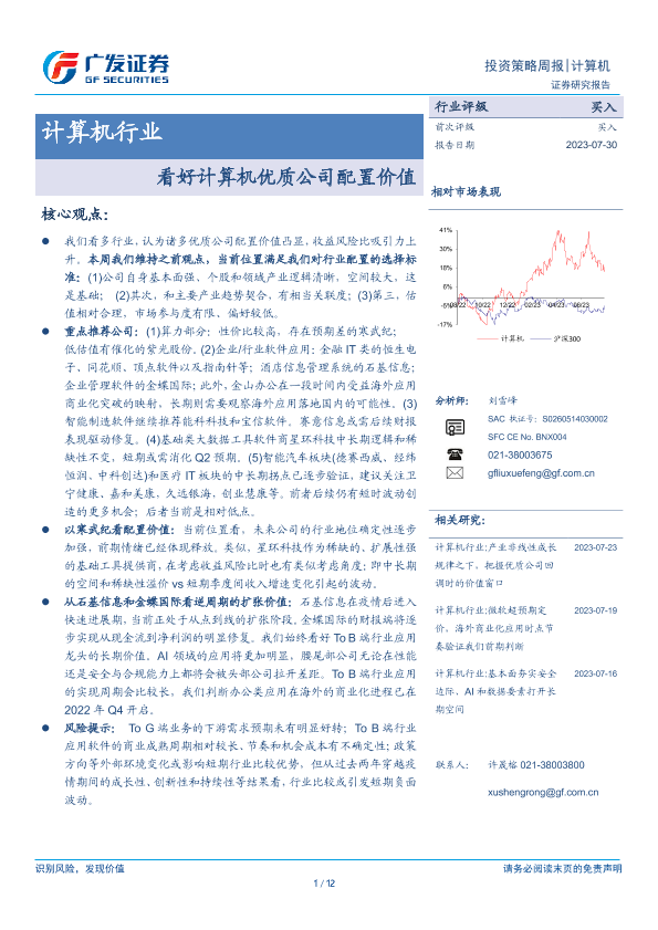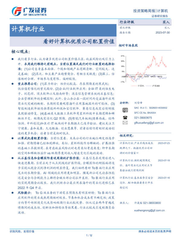 【广发证券】【20230730】20230730-广发证券-计算机行业投资策略周报:看好计算机优质公司配置价值-12页