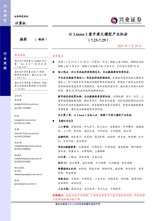 【兴业证券】【20230729】从 Llama 2看开源大模型产业机会 (7.23-7.29)-21页