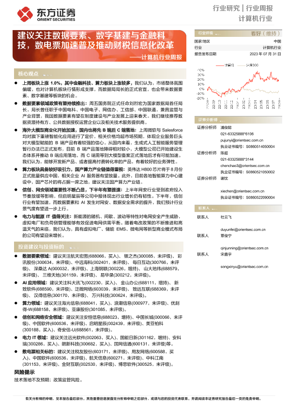 【东方证券】【20230731】20230731-东方证券-计算机行业周报:建议关注数据要素、数字基建与金融科技,数电票加速普及推动财税信息化改革-12页