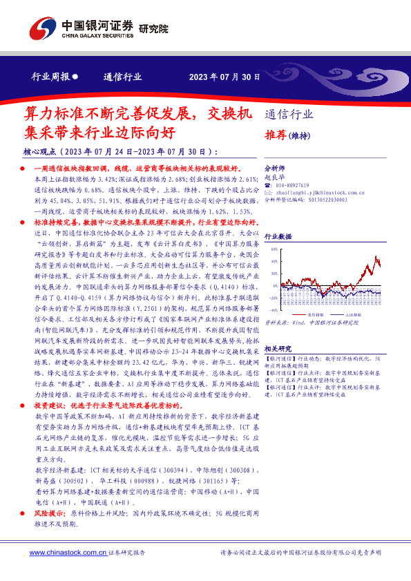 【银河证券】【20230730】通信行业行业周报:算力标准不断完善促发展,交换机集采带来行业边际向好-19页
