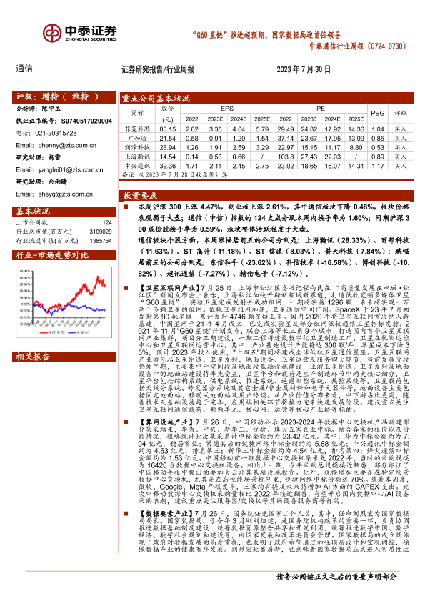 【中泰证券】【20230730】中泰通信行业周报:“G60星链”推进超预期,国家数据局迎首任领导-16页