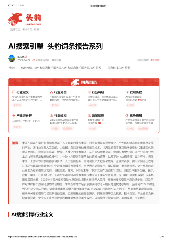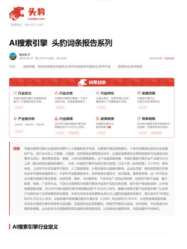 【头豹研究院】【20230711】AI搜索引擎 头豹词条报告系列-16页