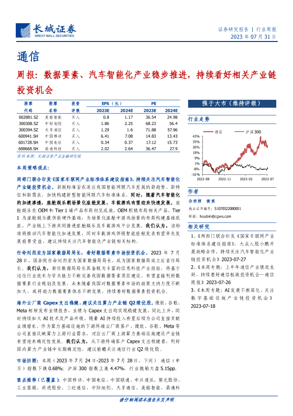 【长城证券】【20230731】通信周报:数据要素、汽车智能化产业稳步推进,持续看好相关产业链投资机会-19页