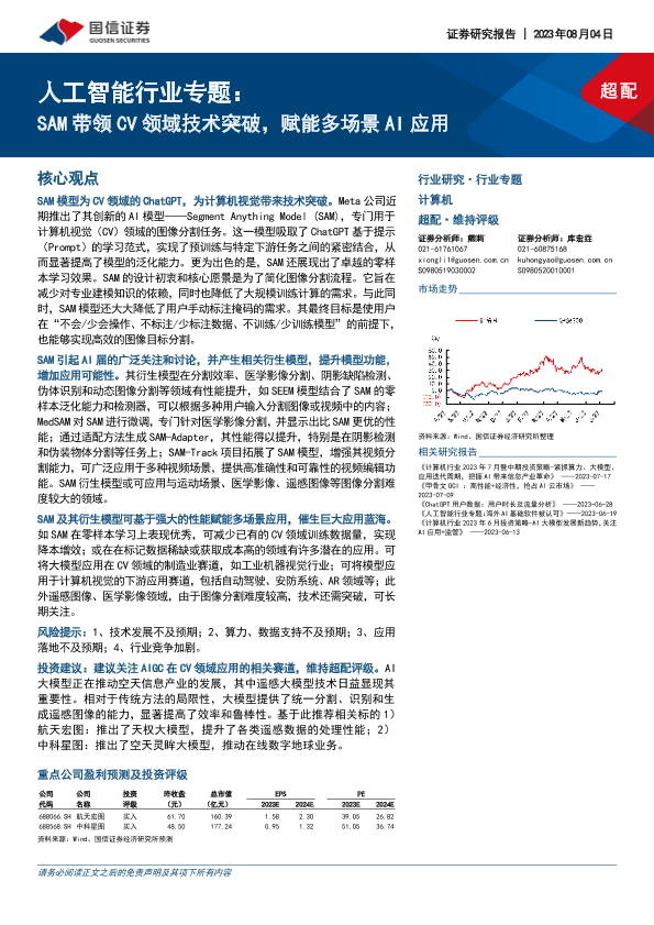 【国信证券】【20230804】20230804-国信证券-人工智能行业专题:SAM带领CV领域技术突破,赋能多场景AI应用-30页