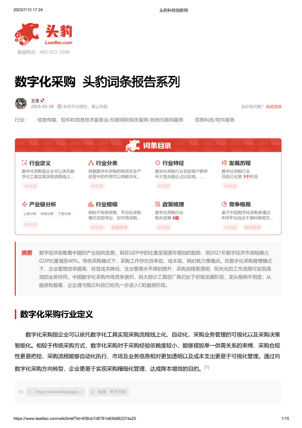 【头豹研究院】【20230328】数字化采购 头豹词条报告系列-15页