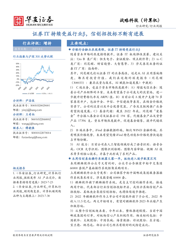 【华安证券】【20230806】20230806-华安证券-战略科技(计算机)行业周报:证券IT持续受益行业β,信创招投标不断有进展-17页