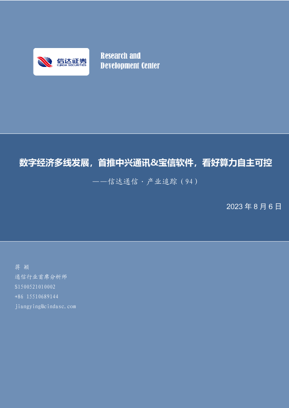 【信达证券】【20230806】20230806-信达证券-信达通信·产业追踪(94):数字经济多线发展,首推中兴通讯&宝信软件,看好算力自主可控-27页