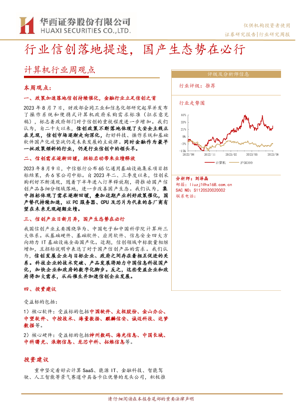 【华西证券】【20230813】20230813-华西证券-计算机行业周观点:行业信创落地提速,国产生态势在必行-33页
