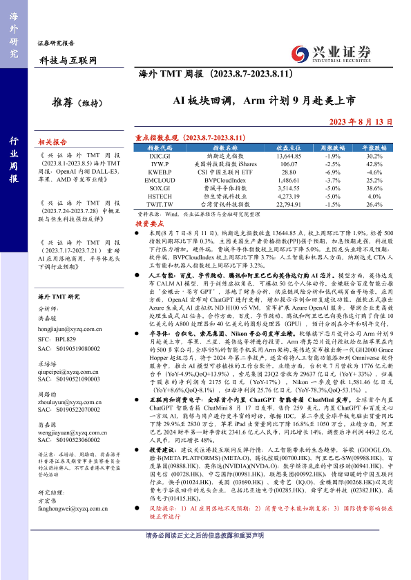 【兴业证券】【20230813】AI板块回调,Arm计划9月赴美上市-13页