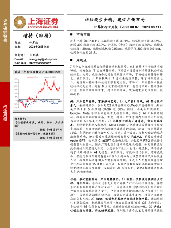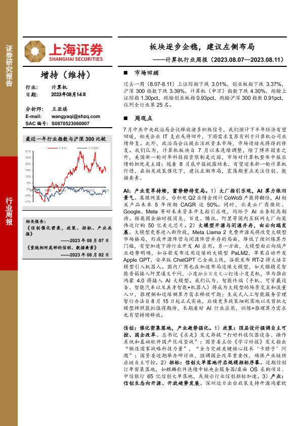 【上海证券】【20230814】计算机行业周报:板块逐步企稳,建议左侧布局-19页