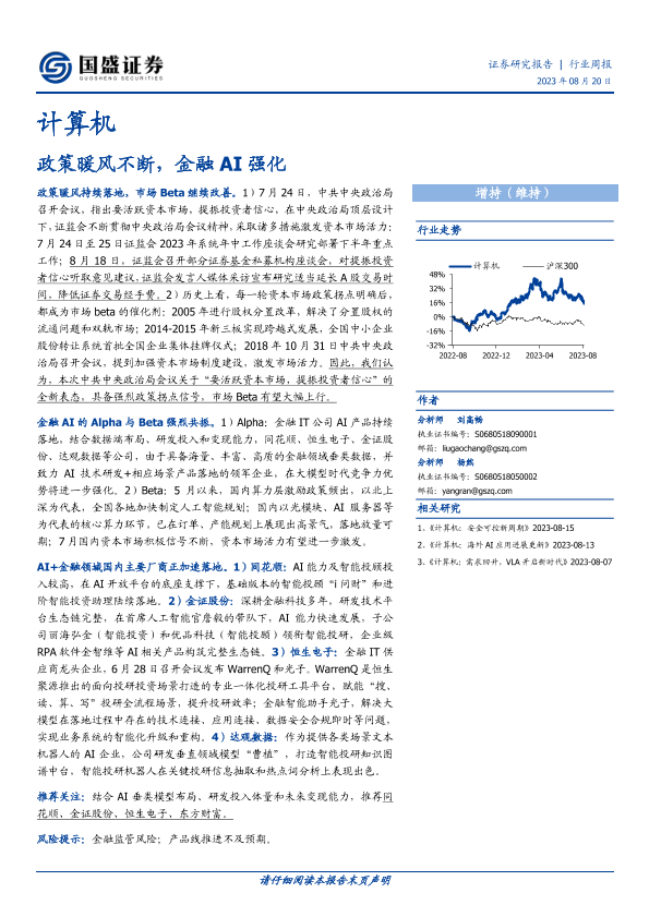 【国盛证券】【20230820】20230820-国盛证券-计算机行业周报:政策暖风不断,金融AI强化-17页