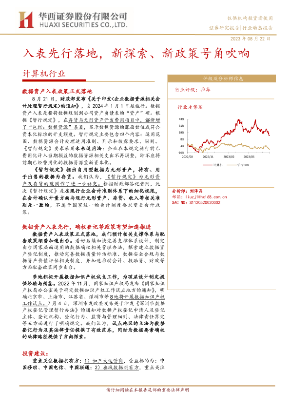 【华西证券】【20230822】20230822-华西证券-计算机行业动态报告:入表先行落地,新探索、新政策号角吹响-12页