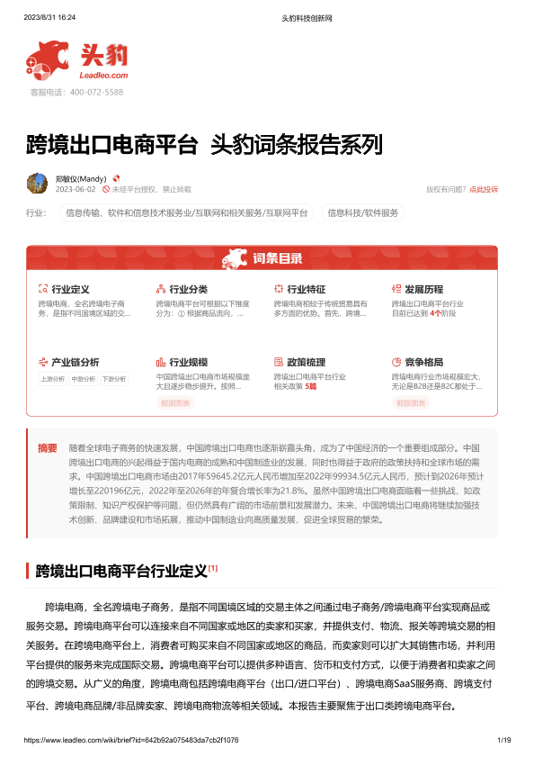 【头豹研究院】【20230602】跨境出口电商平台 头豹词条报告系列-19页