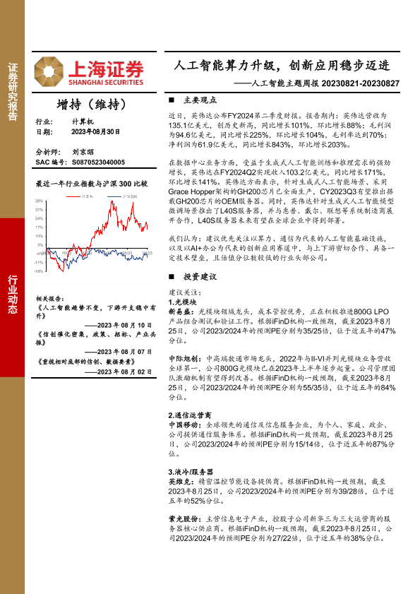 【上海证券】【20230830】20230830-上海证券-人工智能主题周报:人工智能算力升级,创新应用稳步迈进-16页