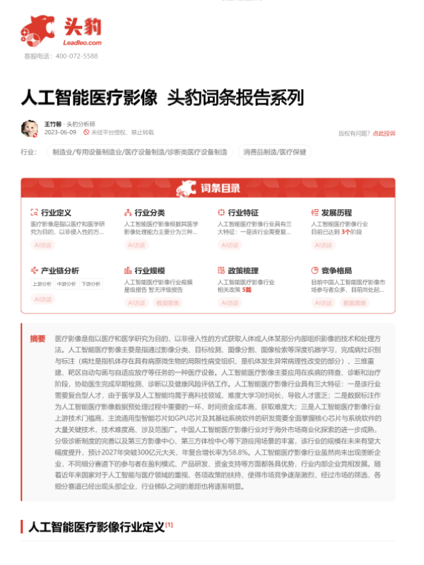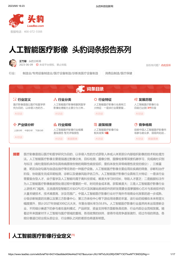 【头豹研究院】【20230906】人工智能医疗影像 头豹词条报告系列-17页
