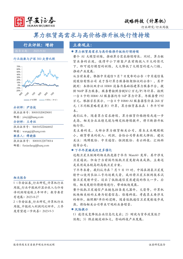 【华安证券】【20230910】20230910-华安证券-战略科技(计算机)行业周报:算力租赁高需求与高价格推升板块行情持续-13页