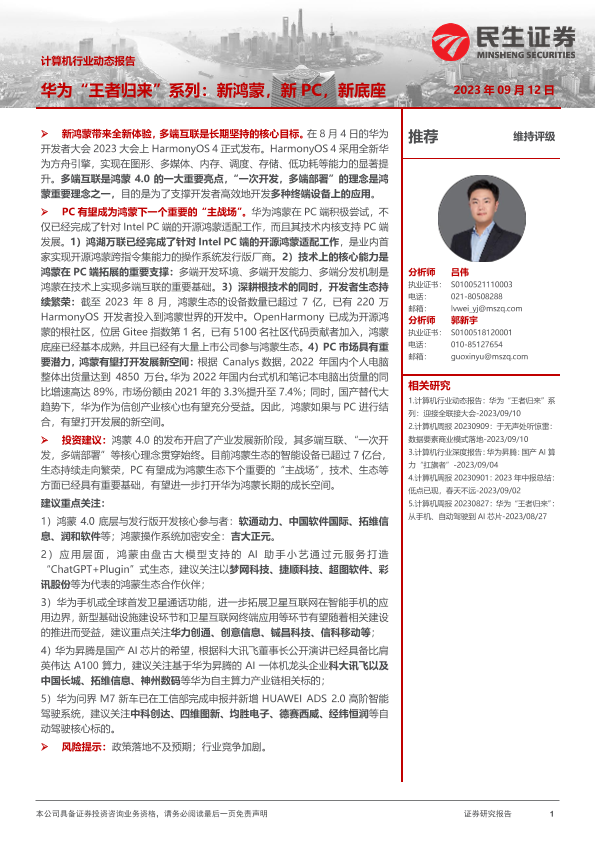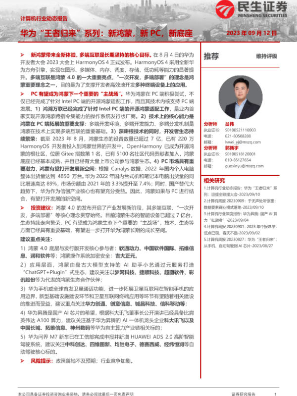 【民生证券】【20230912】华为“王者归来”系列:新鸿蒙,新PC,新底座-12页