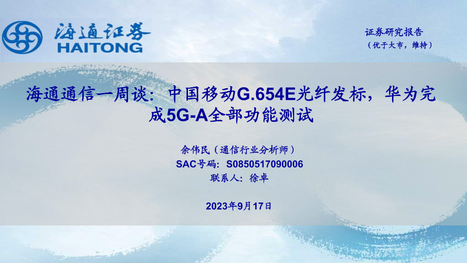 【海通证券】【20230917】海通通信一周谈:中国移动G.654E光纤发标,华为完成5G-A全部功能测试-11页