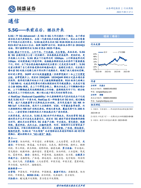 【国盛证券】【20230917】通信行业周报:5.5G—承前启后,继往开来-18页