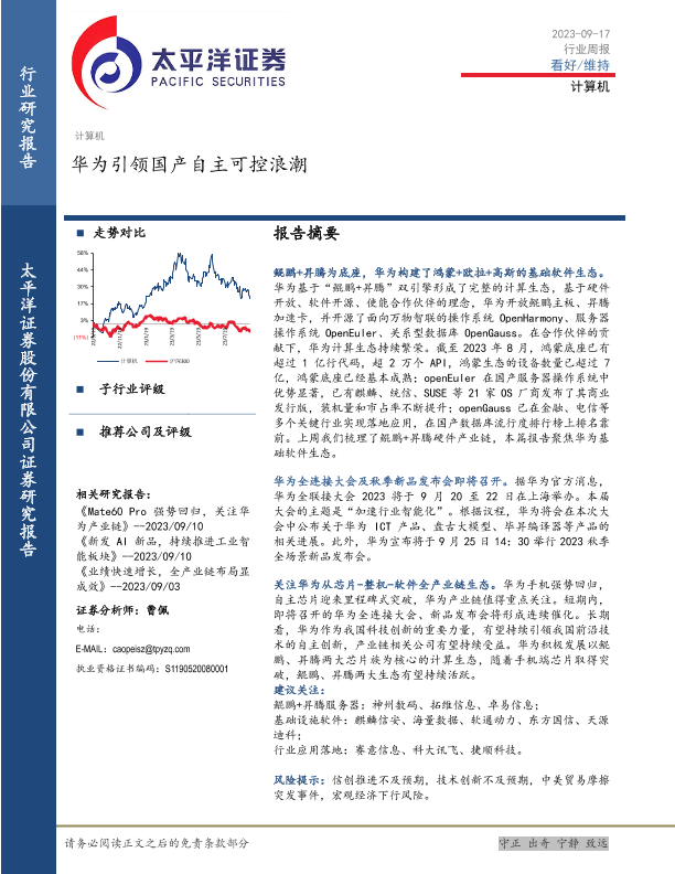 【太平洋证券】【20230917】20230917-太平洋-计算机行业周报:华为引领国产自主可控浪潮-17页