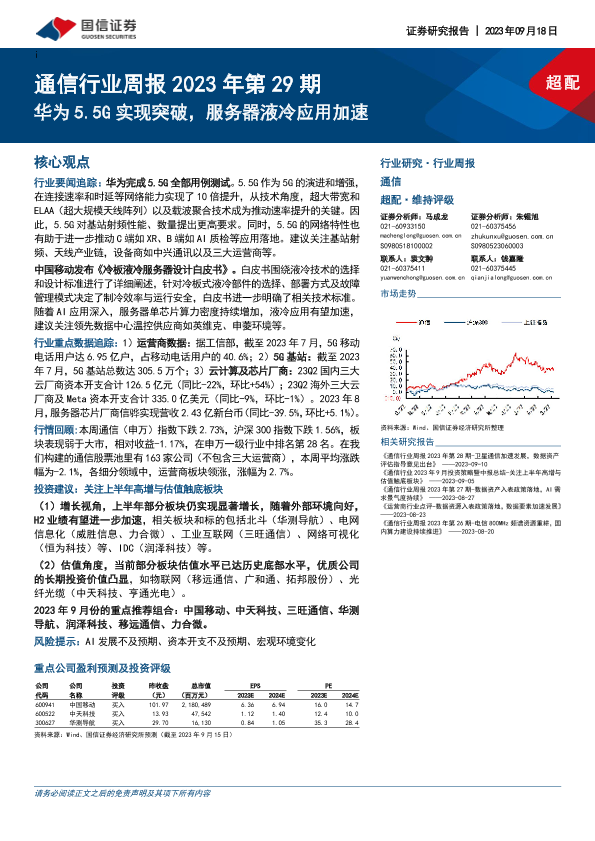 【国信证券】【20230918】通信行业周报2023年第29期:华为5.5G实现突破,服务器液冷应用加速-24页