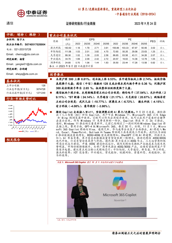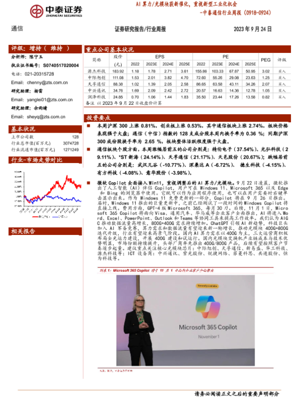 【中泰证券】【20230924】AI算力/光模块获新催化,重视新型工业化机会 -中泰通信行业周报(0918-0924)-16页