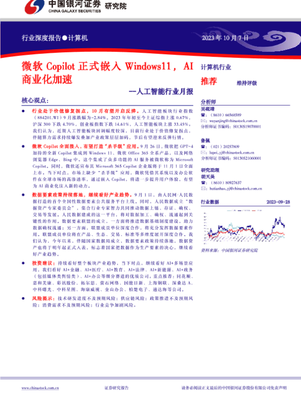 【银河证券】【20231007】微软Copilot正式嵌入Windows11,AI商业化加速-38页