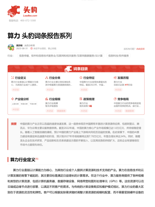 【头豹研究院】【20231025】算力 头豹词条报告系列-17页