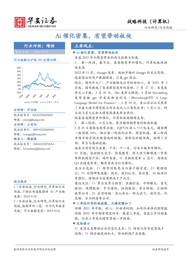 【华安证券】【20231015】20231015-华安证券-战略科技(计算机)行业周报:Ai催化密集,有望带动板块-15页