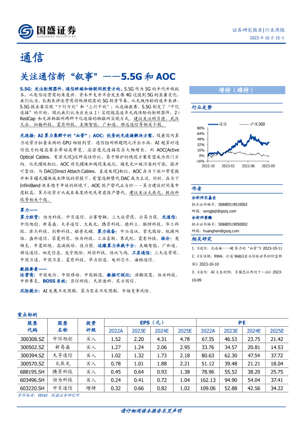 【国盛证券】【20231015】通信行业周报:5.5G和AOC-关注通信新“叙事”-19页