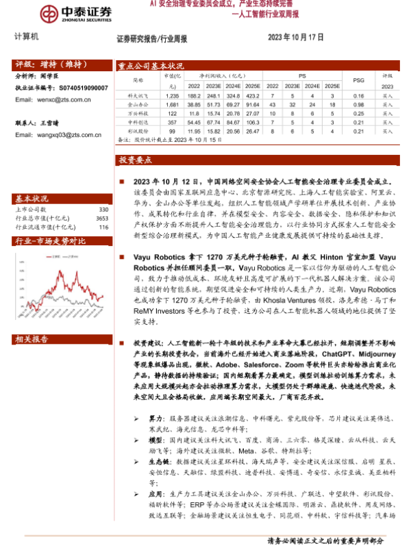 【中泰证券】【20231017】AI安全治理专业委员会成立,产业生态持续完善 --人工智能行业双周报-16页