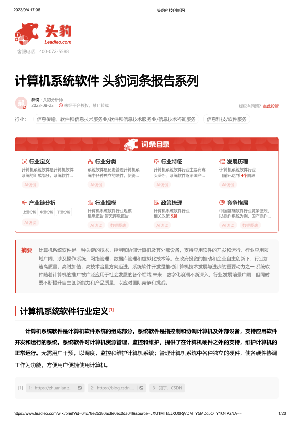 【头豹研究院】【20231019】计算机系统软件 头豹词条报告系列-20页