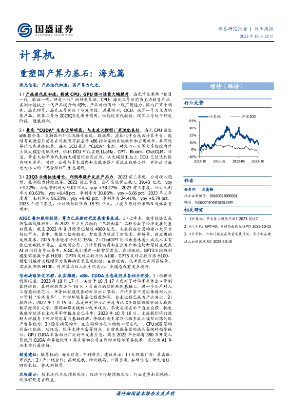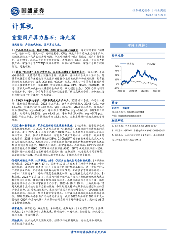 【国盛证券】【20231022】20231022-国盛证券-计算机行业周报:重塑国产算力基石:海光篇-15页