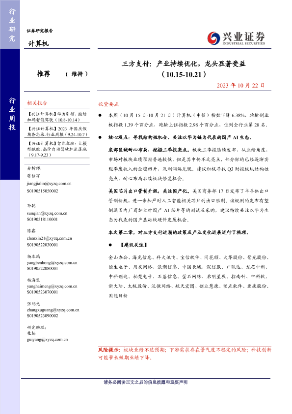 【兴业证券】【20231022】三方支付:产业持续优化,龙头显著受益-21页