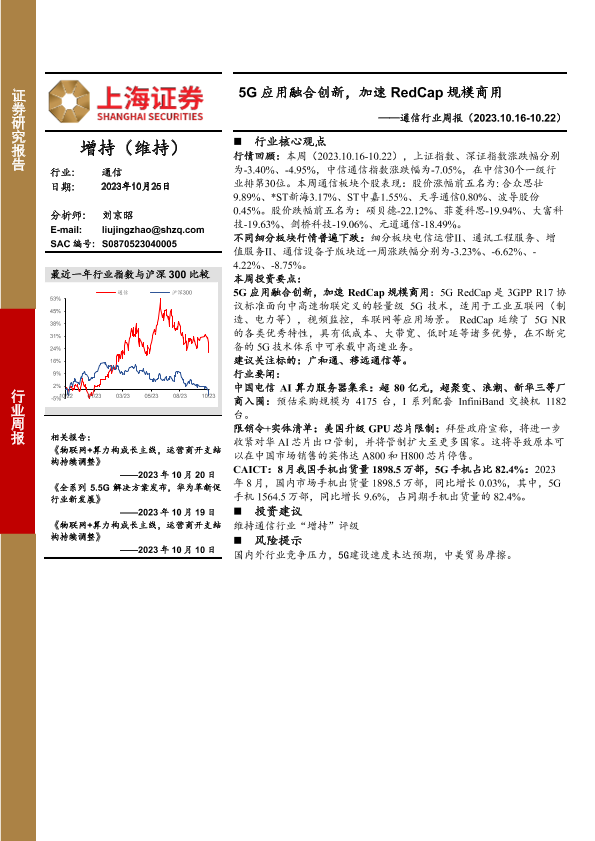 【上海证券】【20231025】20231025-上海证券-通信行业周报:5G应用融合创新,加速RedCap规模商用-11页