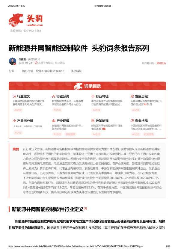 【头豹研究院】【20231024】新能源并网智能控制软件 头豹词条报告系列-16页
