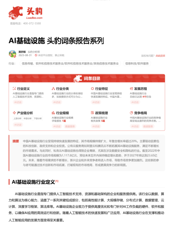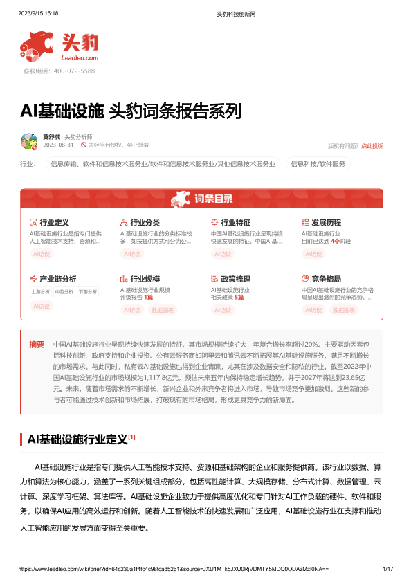 【头豹研究院】【20231025】AI基础设施 头豹词条报告系列-17页