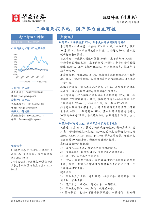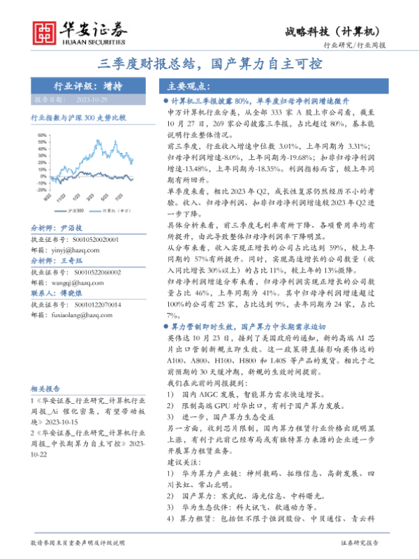 【华安证券】【20231029】20231029-华安证券-战略科技(计算机)行业周报:三季度财报总结,国产算力自主可控-27页