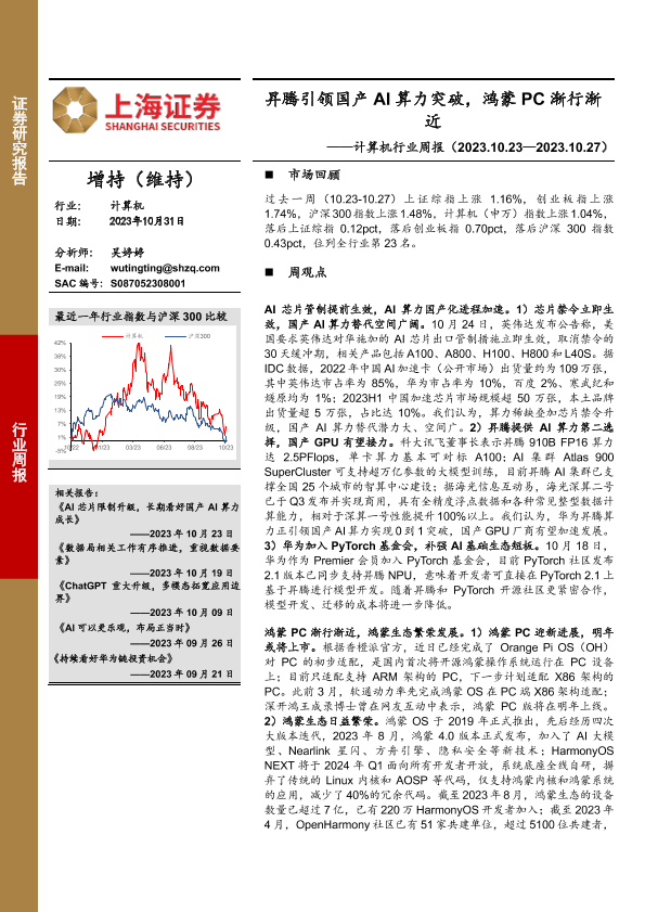 【上海证券】【20231031】计算机行业周报:昇腾引领国产AI算力突破,鸿蒙PC渐行渐近-31页