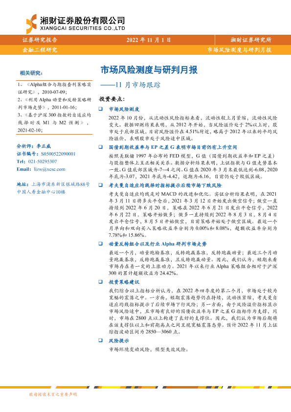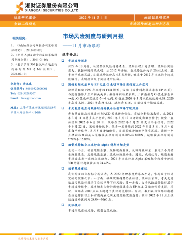 【湘财证券】【20221101】11月市场跟踪:市场风险测度与研判月报-15页
