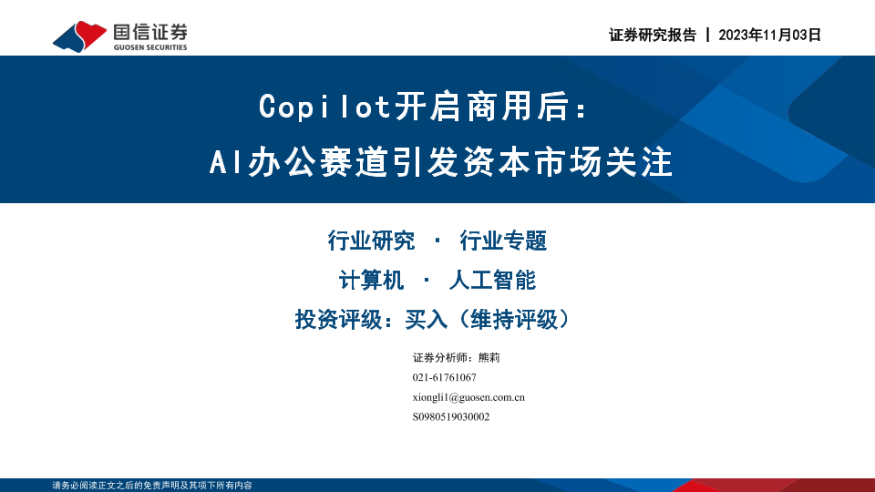 【国信证券】【20231103】Copilot开启商用后:AI办公赛道引发资本市场关注-13页