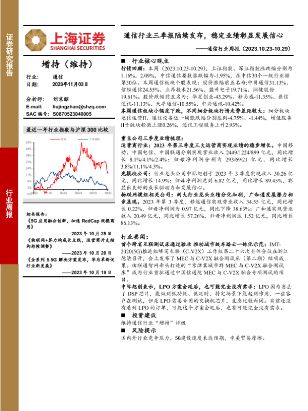 【上海证券】【20231103】通信行业三季报陆续发布,稳定业绩彰显发展信心-10页