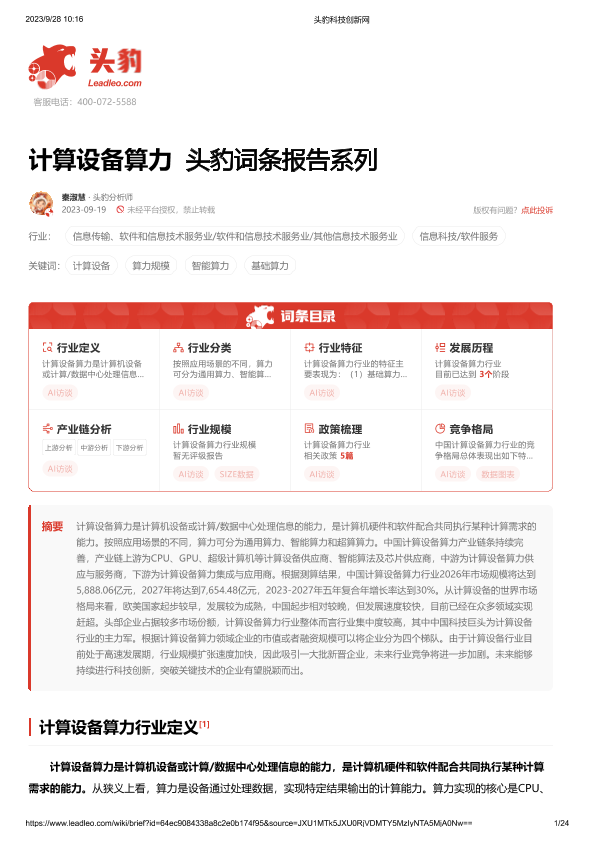 【头豹研究院】【20230919】计算设备算力 头豹词条报告系列-24页