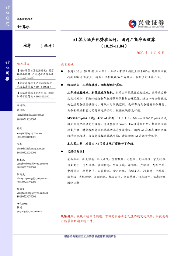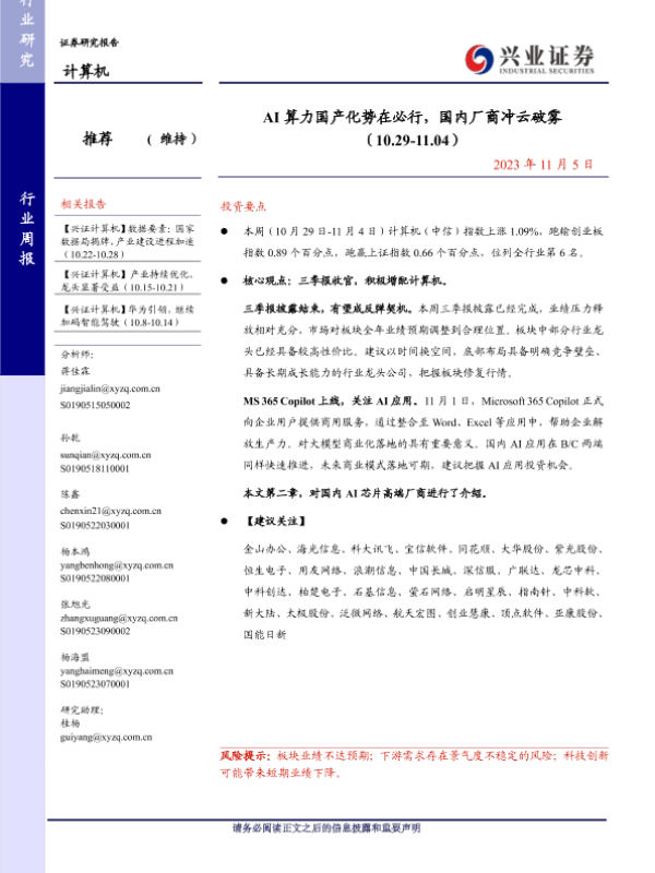 【兴业证券】【20231105】AI算力国产化势在必行,国内厂商冲云破雾-19页
