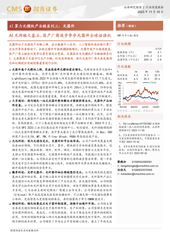 产业链分析 人工智能 光器件 光通信 国产厂商